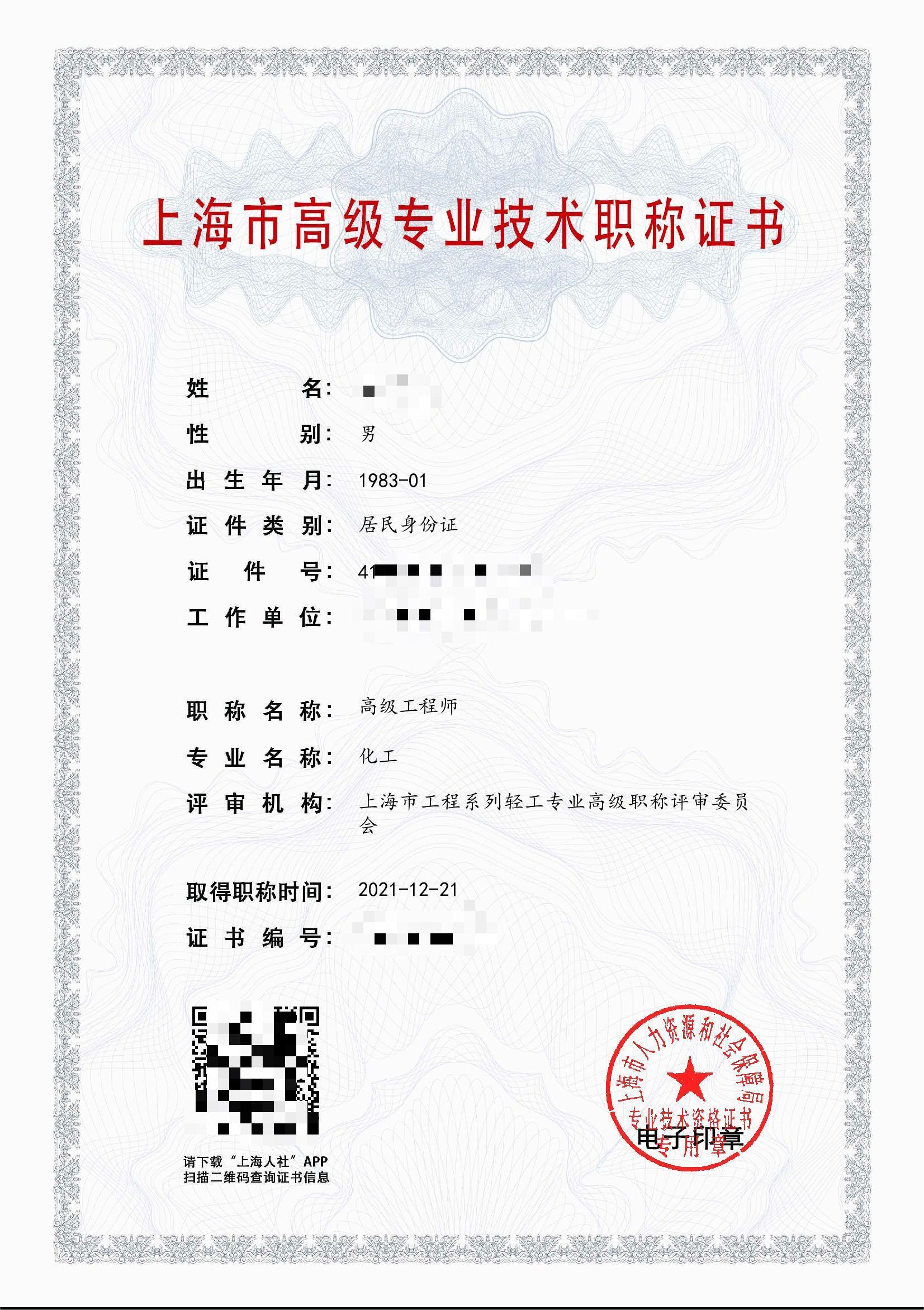 2021年高級(jí)職稱(化工)